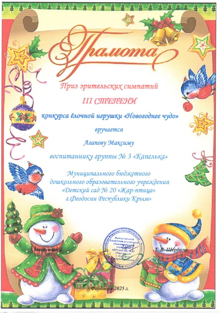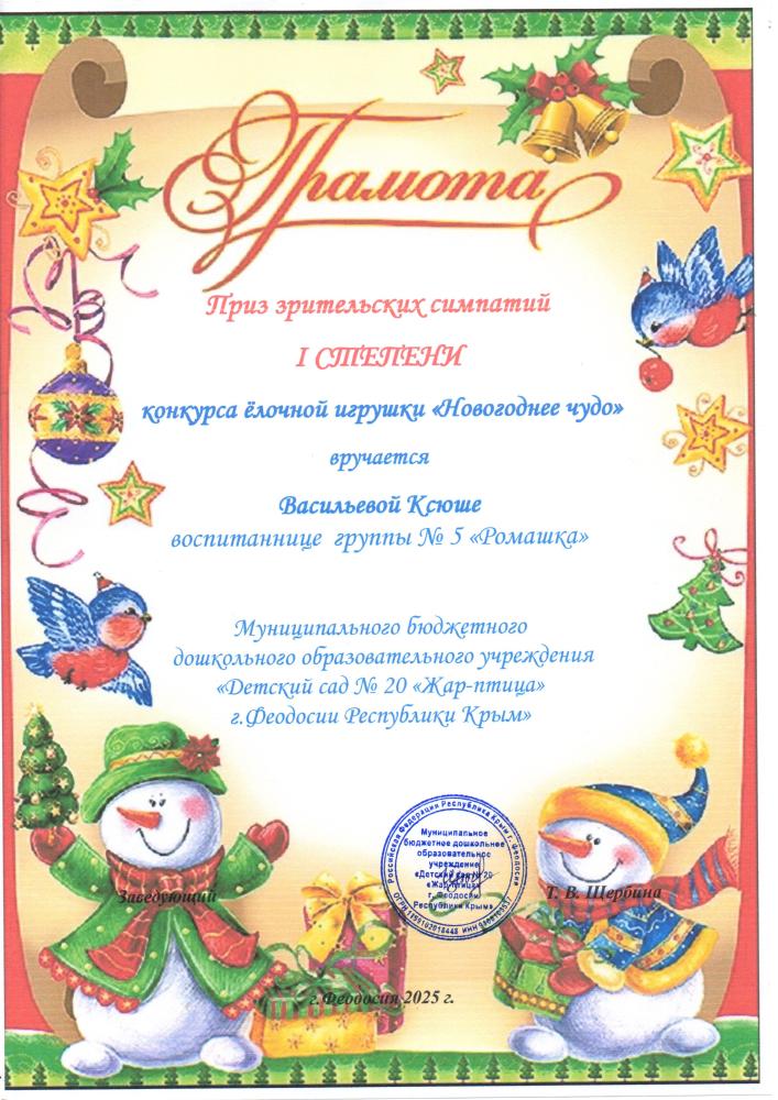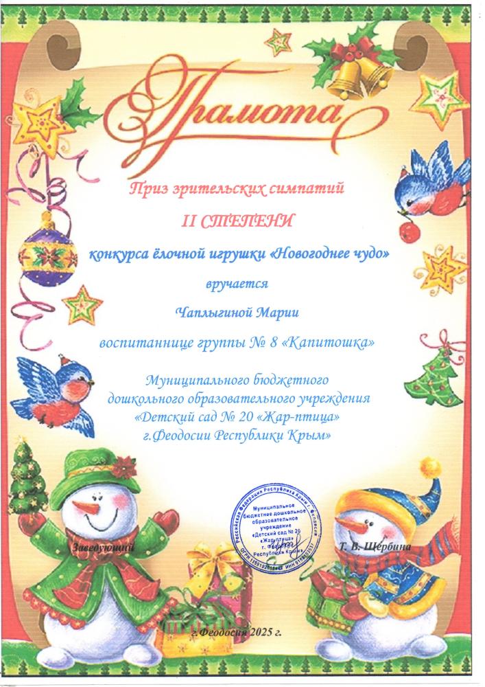 Накануне новогодних утренников в нашем детском саду прошёл конкурс ёлочных игрушек «Новогоднее чудо». Задачей конкурса было создание праздничной атмосферы и вовлечение детей и родителей в творческий процесс по изготовлению авторской ёлочной игрушки.
